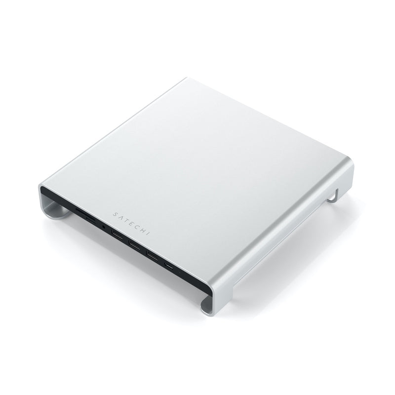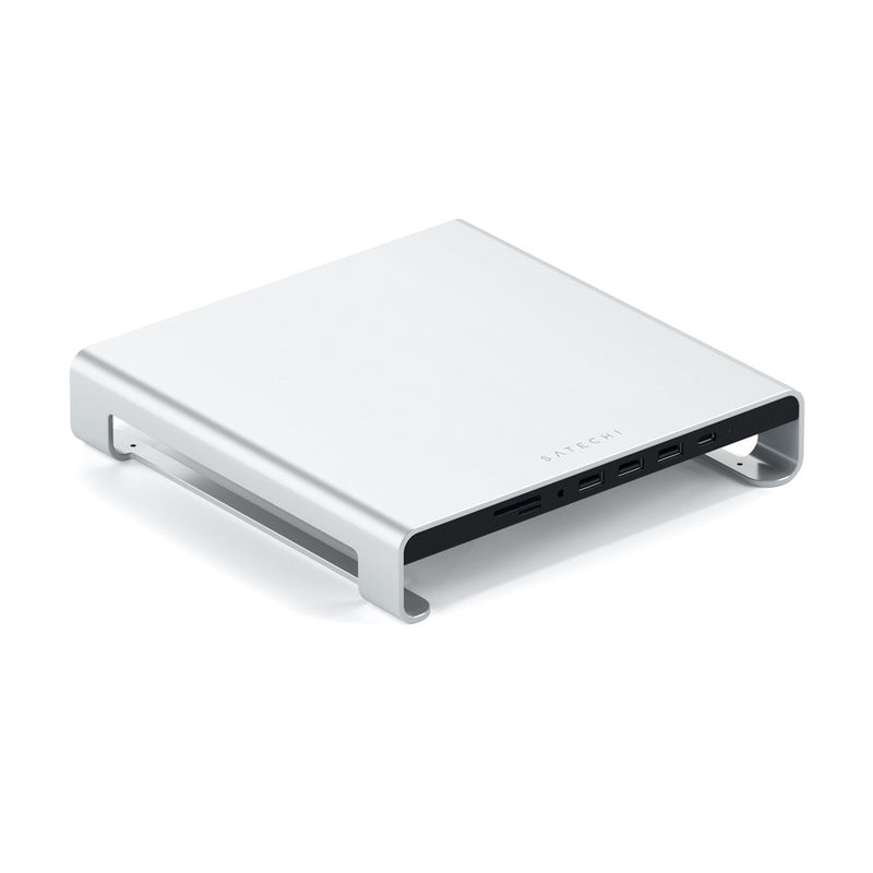 The Satechi Type-C Aluminium Monitor Stand Hub for iMac is your perfect 2-in-1 solution to enhance and elevate your desk space. Featuring built-in USB 3.0 ports, USB-C data port, micro/SD card slots, and audio jack, your most-used ports are now within reach for maximum productivity. Its sleek, modern aluminium design seamlessly complements your iMac and raises your monitor screen to an optimal viewing angle. Designed for all Apple iMac models with our included Type-A to Type-C adapter.